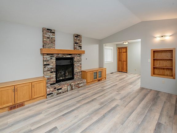 This adorable & updated rambler has been lovingly maintained by the original owner. The main floor features an expanded living room with vaulted ceilings & a cozy brick gas fireplace with cabinets for storage (removable with flooring underneath). All flooring replaced in 2021! The kitchen is clean as a whistle with beautiful shaker cabinets, peninsula with seating & a pantry. Formal dining room perfect for entertaining! 2 bedrooms & a gorgeous updated 3/4 bath complete the main floor. The basement offers a large family room, 3/4 bath, & a den/non-conforming bedroom. Install an egress window to make it a 3rd bedroom! The attached 2-car garage features convenient built-in cabinets. In the fenced backyard, you'll enjoy a perennial garden, fire pit, & stamped concrete patio with sun shade to enjoy during the warmer months. Roof replaced in 2021 & washer in 2022! Front Hardie Board siding & the rest is steel. Plus Casey Lake Park is right around the corner.
