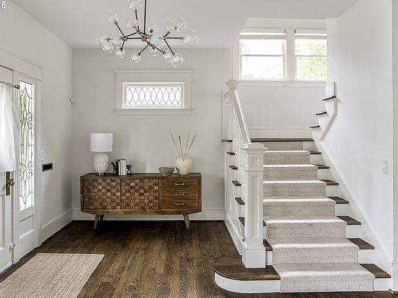 Step inside this stunning 1907 Irvington Foursquare and immediately feel the warmth—sunlight streams through classic windows illuminating the gorgeous oak floors. The high ceilings give every room an airy, timeless feel. Fully renovated with impeccable attention to detail in 2019 this home offers the rare balance of historic charm and modern comfort. The main floor is designed for gathering, with a gracious entry, spacious living and dining rooms, cozy family room, and stunning chef’s kitchen featuring an oversized island and gourmet appliances. A gas fireplace anchors the living room, while French doors open to beautifully designed outdoor spaces, including patios, porches, and a covered area with fireplace. Upstairs, three bedrooms and two full baths include a luxurious primary suite with custom built-ins, private en suite bath, and rooftop deck. The third floor offers a versatile retreat—perfect for an office, studio, or quiet reading nook. The fully finished lower level with side entrance, provides a large family room, two bedrooms, full bath, and laundry—ideal for guests, multigenerational living, or potential rental income/ADU. Recent upgrades include dual central air conditioning and a new hot water heater. Set in the heart of a welcoming community known for neighborhood porch and block parties, this home offers unbeatable walkability to parks, coffee shops, grocery stores, restaurants, and local favorites. Move-in ready and brimming with light —this is not just a house, but a home designed for modern living with historic soul. [Home Energy Score = 4. HES Report at https://rpt.greenbuildingregistry.com/hes/OR10155816]