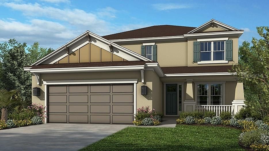 Under Construction. REPRESENTATIVE PHOTOS ADDED! December Completion! The Bonaire floor plan at River Landing offers unmatched traditional charm and livability. The main living area on the ground floor combines the kitchen, casual dining area, gathering room with a 2-story-high ceiling, and dining room for an appealing open-air feel. The downstairs owner’s suite offers convenience, privacy, and style. The sunny lanai spans the back of the home. Upstairs, the loft overlooks the family room. This area is ideal for a computer area or sitting room. A study is entered from the loft. Three secondary bedrooms share two full baths. Enjoy a beautiful pond view! Design upgrades feature wood like tile throughout and pendant lighting package. Structural options include: canvas classic gourmet kitchen, interior doors 8 foot throughout the home, outdoor kitchen rough- in, and oak treads with painted risers and spindles.