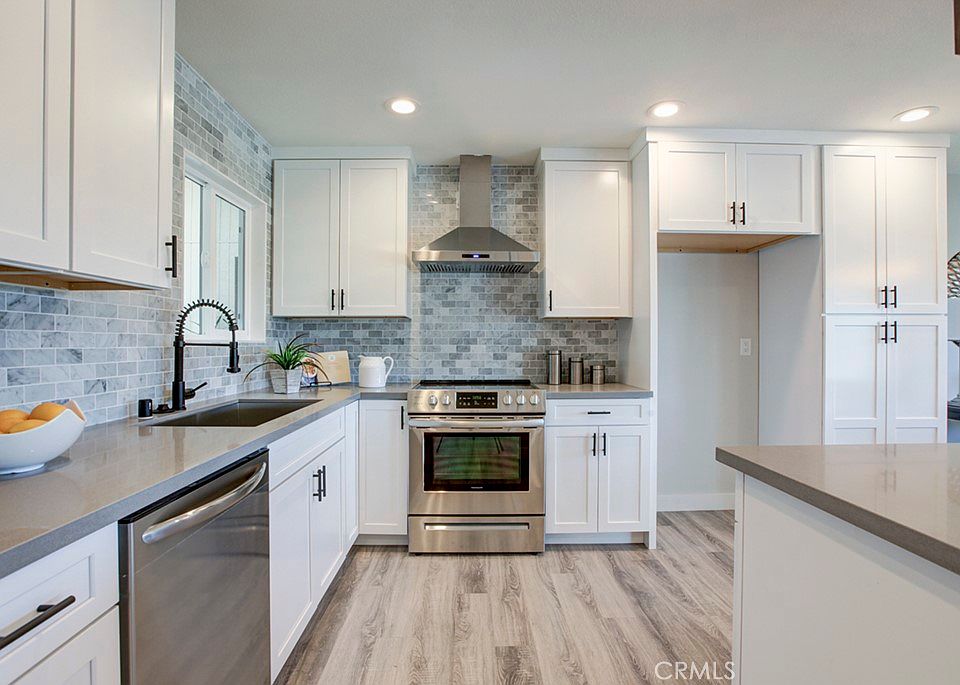 Highly upgraded and professionally designed modern single level two bedroom and two bath upper Castilla model with views. This home has just gone through a complete remodel. Upgraded flooring, upgraded baseboards, new dual pane windows, new dual pane sliders and recessed lighting throughout the home. The kitchens offers stainless steel appliances, upgraded stone countertops, breakfast bar, island, custom backsplash and brand new custom cabinets. Highly desired open concept with the kitchen open to the dining area and family room which features a fireplace. Ample natural light flows throughout the home. Master bedroom offers a highly upgraded en suite with modern touches including a glass enclosed walk in shower and vanity. Guest bath offers the same modern touches as the master bath. Laguna Woods is 55+ adult community which is located just minutes from Laguna Beach. HOA includes Cable, Water, trash and maintenance. Amenities include 27 hole championship golf course, tennis courts, pools/spas, fitness centers, lawn bowling, equestrian center, billiards, library, 7 clubhouses, walking trails, 200+ social clubs, private recreation room with pool table, kitchenette, bar and so much more.