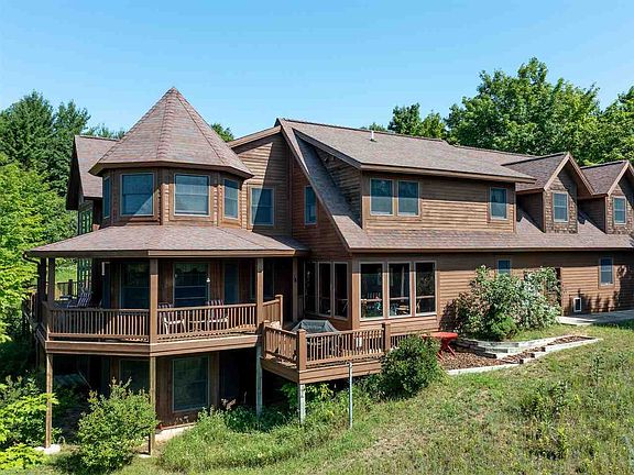 Enjoy lots of privacy in this beautiful 5 bedroom home custom built in 2001. Located just 10 minutes north of Harbor Springs on a quiet, wooded 4.3 acres with private access to trails on the neighboring 160 acres, this property is an outdoor enthusiast's dream. The main floor offers a living area with cherry and slate floors, wood-burning fireplace, vaulted ceiling with windows providing great natural light, two guest rooms w/ full bath, dining room, and a gourmet kitchen with a large pantry, two-level custom island and a cooktop island. The upper level includes a master suite with big views and a custom slate shower and whirlpool tub, a separate library, two additional bedrooms w/ full bath, a large laundry room and bonus room over the garage. The walkout lower level has two large offices, a full bath, two storage areas, family room and a workshop. With full geothermal heating and cooling, heated garage, wonderful 3-season deck, wraparound front porch and a mudroom with storage lockers, this property is perfectly designed for daily family living and remote work.