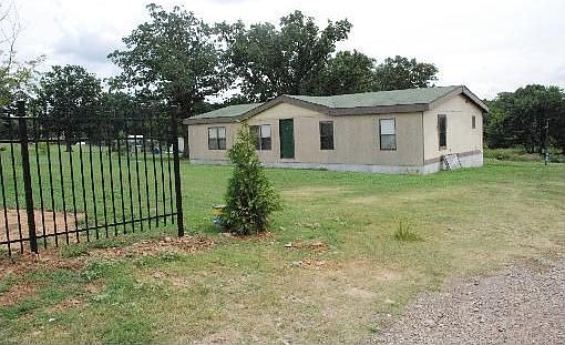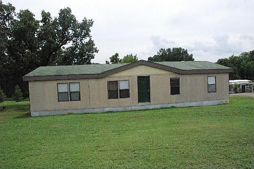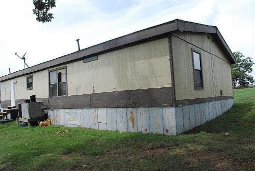 LOCATION: Central Eastern Oklahoma in LeFlore County. About 2 miles to small town with grade through high-school, bank, grocery markets and etc. About 30 minutes to larger city of Ft. Smith, Ark, population about 80,000. About 1.2 hrs to Tulsa. About 2.5 hrs to Oklahoma City. About 4 hrs to Dallas. About 10 miles to the county seat town of Poteau. LAND: 1.33 acres of land which borders for about 135 feet along a graded farm to market road. The land slopes in a Southerly direction from the road ending in a branch valley below. The home is situated near the road and has a scenic overview of the valley. The land is sandy-loam by nature and well suited to fruit, berries and garden crops of all kinds. There are several nice and very large oak shade trees. HOME: This home is a double wide mobile home being a 1985 Commodore "Villa" model. The home is currently occupied and in good livable condition, but it does need cosmetic work to be in tip top condition. The home is fully insulated, has a composition roof, Masonite drop siding with central electric heating and cooling. Features include the following: • Living room – 15 x 25, brown plush shag carpeting wall to wall, cathedral ceilings, ceiling fan with light, white walls with wood paneled wainscoting. • Dining room – 9 x 13, brown plush shag carpeting wall to wall, white walls with wood paneled wainscoting, brass light fixture over dining room table area. • Kitchen – 8 x 13, white inlay flooring, about 14 running feet of wood cabinets on two walls with wood-grain Formica counter tops. Appliances included are a refrigerator, elect cooking range, double sink, dishwasher and vented hood. • Master bedroom – 12 x 15 with corner closet, wall to wall plush brown shag carpeting, white walls. • Master bedroom bath – Oval sink vanity, tub/shower combo unit, storage closet, commode, inlay flooring. • Laundry – washer and dryer connections with storage cabinets above. • Bedroom #2 – 10 x 12, brown shag carpeting, white walls, walk-in closet. • Bedroom #3 – 9 x 12, brown shag carpeting, white walls, walk-in closet. • Hall bathroom – Tub/shower combo unit, oval sink vanity, inlay flooring, commode. TAXES: Estimated to be about $200 per year. PRICE: $25,000. COMMENTS: Perfect for buyer with some do-it-yourself skills that can take this good home that needs a little attention. Home is occupied and perfectible livable, but it does need some repairs, painting and improvement to be in tip-top condition. Beautiful 1.33 acres (estimated size of the land the exact amount to be determined by a survey of the property at time of sale) with the home situated on a gently sloping hillside that affords a scenic view of the branch valley below the home. Very nice land well mowed and dotted with large shade trees. Good soils that will grown all types of garden produce and also good for fruit trees. Plenty of room for a hen house and shop building. If you want to live in a quiet and scenic county location and don't have a lot of money to invest, this might be right for you. Perfectly livable right now, but you can begin improvements to spruce the place up for the future.