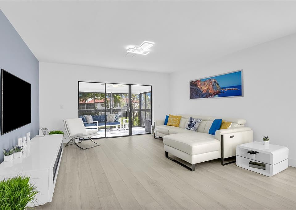 FURNISHED LAKEFRONT CORNER UNIT CONDO in the desirable Cypresses of Boca Lago! This corner unit features a private entrance and stunning lake views from the enclosed patio, offering a peaceful retreat. Just steps from the pool and clubhouse, you'll enjoy convenient parking right at your door. Key features include: • Two pools • Internet and cable included in maintenance • In-unit washer and dryer • New roof (2021), AC (2021), and hot water heater (2024) • Large dining room window and main bedroom window are impact glass. Optional golf membership Easy access to shopping, dining, and highways, this 55+ community combines tranquility and convenience. Don't miss out on this exceptional opportunity! Second-floor unit. Note: Wall hangings plus some items do not convey. ** Welcome home to this furnished lakefront condo in the desirable Cypresses of Boca Lago! This corner unit features a private entrance and stunning lake views from the enclosed patio, offering a peaceful retreat. Just steps from the pool and clubhouse, you'll enjoy convenient parking right at your door.
