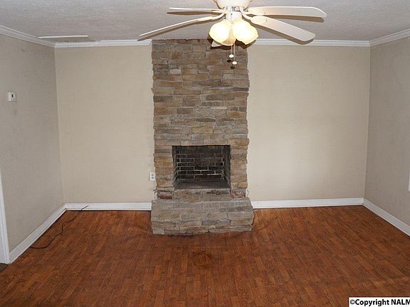 COZY 1 BEDROOM 1 BATH BUNGALOW IN THE ELKMONT SCHOOL DISTRICT. LARGE LOT JUST OVER 1 ACRE. LARGE COVERED FRONT AND REAR PORCHES. WOOD BURNING FIREPLACE IN LIVING ROOM.
