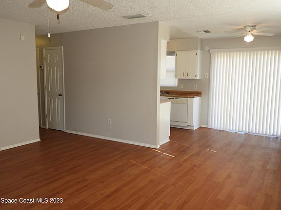 THIS COZY CASA PRESENTS CITY WATER/SEWER, A BIG BREEZY FENCED BACKYARD, A SUNNY OPEN FLOOR PLAN, AND A HIGHLY DESIRABLE LOCATION! EASY-MAINTENANCE WOOD LAMINATE FLOORING SPANS THROUGHOUT THE HOME. GENEROUS LIVING FLOWS INTO A BRIGHT DINING AREA AND GALLEY-STYLE KITCHEN WITH CRISP WHITE CABINETRY. THE COMFORTABLE PRIMARY SUITE OFFERS AN ATTACHED TUB/SHOWER COMBINATION BATH. THE TWO ADDITIONAL BEDROOMS AND SHOWER BATH ARE NICE ACCOMMODATIONS FOR KIDS OR GUESTS. AN INTERIOR LAUNDRY ROOM WITH WASHER/DRYER HOOKUPS LIGHTENS THE HOUSEWORK LOAD! ENJOY CELEBRATIONS INFUSED WITH SUNSHINE ON THE AIRY PATIO OVERLOOKING AN EXPANSIVE FULLY-FENCED BACKYARD! 1 SMALL PET CONSIDERED. LOCAL SCHOOLS, GROCERY SHOPPING, RESTAURANTS, I-95, MEDICAL SERVICES, AND MANY MORE CONVENIENCES ARE ALL CLOSE BY!