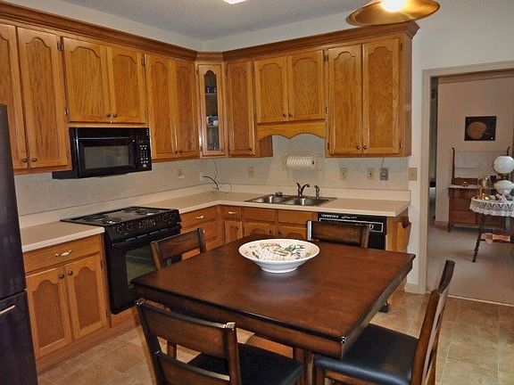 - KITCHEN DESC: Eat In Kitchen, Vinyl, Pantry, Crown Mold, Window Cov, 9? Ceiling, Bay WDW