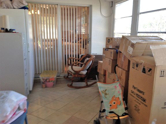2 BR, 1 1/2 Bath, 1 car garage, waterfront, corner property; Large fenced back yard; enclosed lanai.