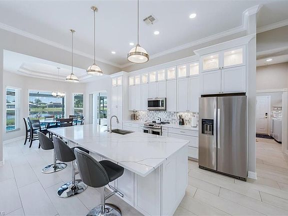 Colorful skies every day!! You are wowed the minute you walk through the front door. The Florida lifestyle abounds in this exceptional home with huge lake views and colorful sunsets. Well over $500,000 in upgrades and on one of the best half acre lots in desirable Imperial with a 3 car garage. This home has been updated with an open great room concept large kitchen island and upscale accents throughout. High ceilings & modern feel are found throughout the entire home and rivals new construction. It is light and bright and perfectly designed for family living or entertaining. The main house has 3 bedrooms with ensuite baths. There is a cabana suite that is perfect for an in-law suite, live in aid or returning college students. All new circular paver drive and upscale landscaping greet you as you pull up. Upon entering the double front doors you are captivated by the sparkling lake view. Walls of windows, custom features and all new kitchen are awe inspiring. All windows and doors are Impact rated giving peace of mind for any storm. Light wood look tile flows from room to room for consistency. The owner's suite has a resort inspired spa like bath with jetted tub. There are two more guest suites with updated baths. A huge paver lanai has two under cover spaces and the custom pool has been resurfaced. Picture screen pool cage brings the lake to you. The oversized 3 car garage has epoxy flooring, a second refrigerator and cabinets on wheels. Newer roof and water heater as well. Imperial is close to beaches, fine & casual dining, shopping and I-75 for traveling. A must see home is sure to be the one! Low HOA fees and optional club membership make Imperial highly desirable. Imperial has a guard gate off US 41 and a residents gate to Livingston road making this convenient to everything. Close to beaches, shopping and dinning.