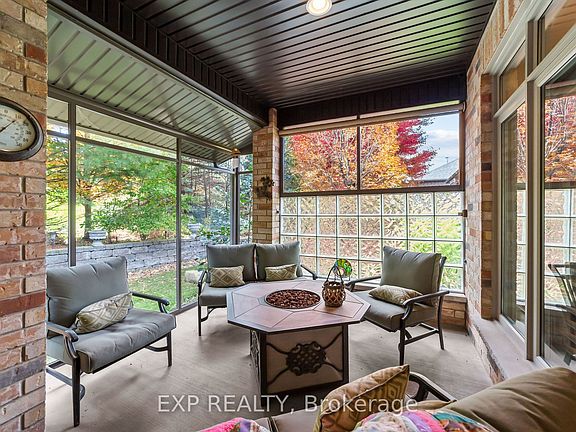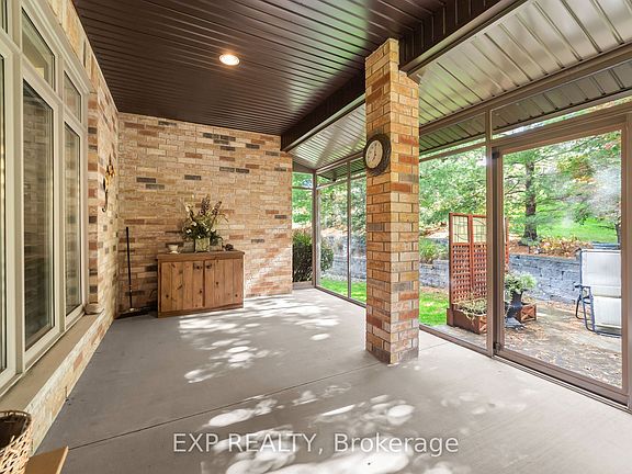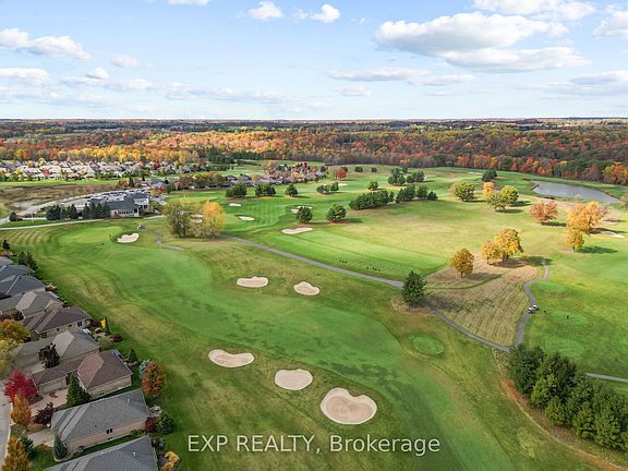 This home stands out for more than its beauty - it carries one of the lowest land-lease fees in RiverBend ($430.97/month), offering unmatched value in London's most exclusive 50+ gated golf community. Set around an 18-hole championship course and 160 acres of protected forest along the Thames River, RiverBend blends resort-style amenities with small-town warmth. Residents enjoy a 28,000 sq. ft. clubhouse featuring a restaurant, lounge, verandah overlooking the greens, indoor heated pool, fitness centre, and over 20 active social clubs. Add 24-hour concierge service and forested walking trails, and you get a lifestyle that's social, secure, and maintenance-free. This Westchester model bungalow offers over 3,000 sq. ft. of finished living space, surrounded by mature trees and lush gardens. The covered screened in back porch spans the rear of the home, overlooking a patio feeling like a private, park-like retreat. Curb appeal shines with manicured landscaping, a double garage, wide drive with plenty of parking, and dedicated golf-cart bay with interior access. Inside, the Great Room features vaulted ceilings, hardwood floors, and a gas fireplace. The upgraded kitchen includes granite counters, a large island, pantry, and breakfast nook. The primary suite showcases garden views, a walk-in closet, and a spa-style ensuite. A second bedroom has its own ensuite, and a third makes a perfect office or den. The finished lower level adds a large recreation area with wet bar, 3rd/4th bedroom, full bath, and workshop. Updates include an updated roof, fresh paint, select new windows, central vac, and owned 60-gallon water heater. Maintenance fee ($633.31/month) covers concierge, lawn care, snow removal, and full clubhouse privileges. 2137 Jack Nash Drive is more than a home - it's right-sized living in London's most desirable adult community. The absence of sidewalks at the end of the laneway creates a retreat-like atmosphere.