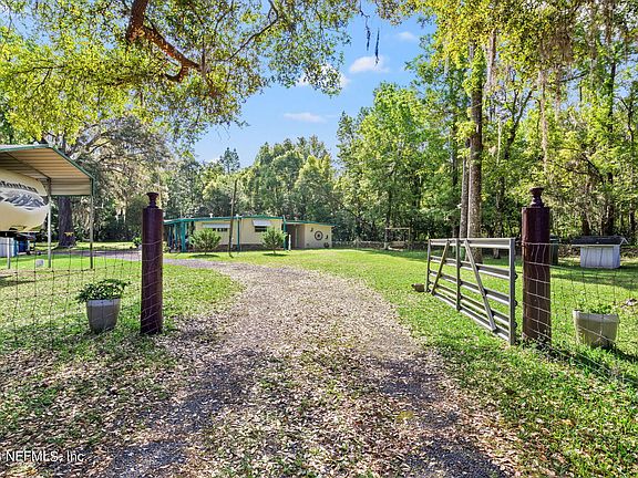 ''Country Living'' at it's best. Over an acre of private grounds to enjoy. Sit on the screened in back porch and enjoy the sunset with a glass of Chardonnay. Finally you can plant that garden you have always wanted. Fish in the stream that runs along side the property. Strum your guitar next to the fire pit as your friends sing along. Keep the family pets safe with fenced in backyard. Park your RV under the canopy with the 50 AMP electrical connection that includes water. The full two car garage includes a built in work bench and additional lean to shed for your zero turn lawn mower. No HOA, No CDD fees. Perfect for work vehicles, recreational vehicles or boat storage. Gated front entrance for security. Close to restaurants, shopping, the gym, NASJAX and the interstate. Check it out today today