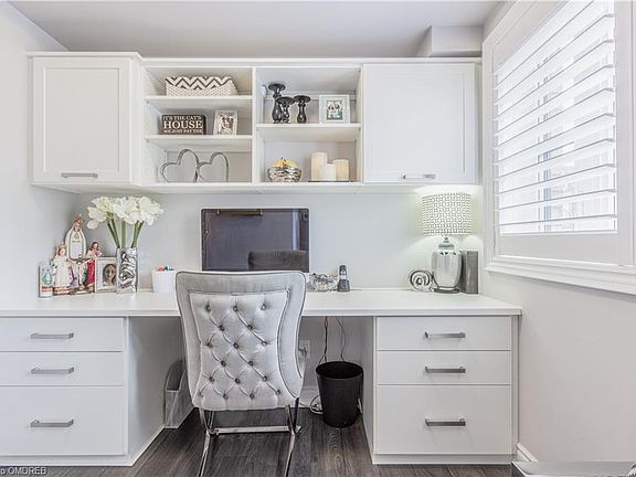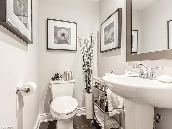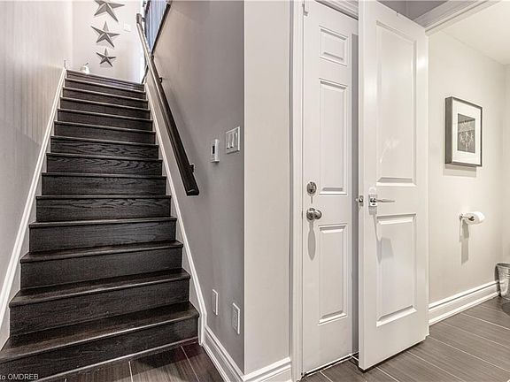 This super chic and trendy urban town is ideally located in North East Oakville. Close to shops, restaurants and easy commuter access to 403, QEW, 407 & GO. Live in luxury with approx. $110k in modern upgrades! Carpet free! Custom built ins. Custom fireplace ($10k). 7 1/2' plank hardwood flooring, beautiful bathrooms, Callifornia shutters, upgraded audio and light fixtures, heated floors in the foyer, crown molding on lower and main level just to highlight a few of the fine details. Gorgeous white kitchen with quartz countertops including waterfall on the breakfast bar, built in wine fridge, more built ins for extra storage, upgraded appliances including gas stove. Walkout to private deck off the kitchen for BBQing and outdoor living. 3rd floor laundry with storage cupboards. Luxurious master retreat with spa inspired ensuite, custom closets and a deck to enjoy your morning coffee! Upgraded tile in all of the bathrooms. The custom garage upgrade alone cost $8000. The garage parks 2 cars (tandem) and extra room for storage. This home is magazine worthy! Perfect for someone looking for a stunning home with a lot of WOW, without a lot of outdoor maintenance. Well established neighbourhood - no living with ongoing construction!