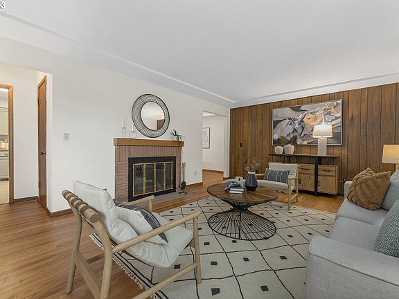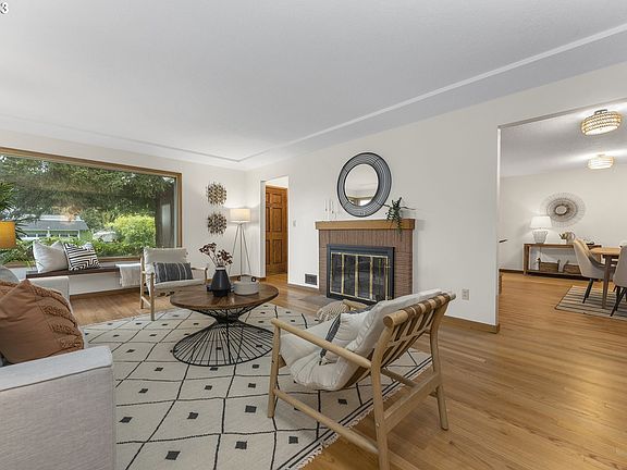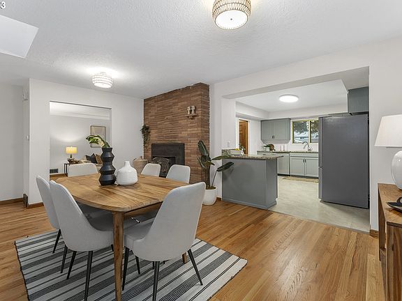 1959 Mid-century 3 bedroom 2 bath ranch home. Take advantage of this solid-built, move-in-ready, low-maintenance home. Grab it before rates go up again. You will want to cozy up to one of the fireplaces in this spacious living room with a large corner window and gleaming refinished hardwood floors throughout. Find the 2nd fireplace around the corner in the dining room that looks into the kitchen with all-new stainless steel appliances and newly painted cabinets. You will love the extra Large bonus/Family room with new wall-to-wall carpet and patio doors to the large corner lot, with a fenced yard, a gate for RV parking, and an oversized shed for yard tools. There is plenty of room for parking on this newer poured concrete driveway. Stay dry with an attached double-car garage with an opener. Updates include New electrical panel, New stainless steel kitchen appliances, Interior paint throughout, Exterior paint, Tiled bath/shower, Refinished and new hardwood flooring added for a seamless flow, New kitchen and dining room lighting, and a newer Driveway. You will love this quiet NE neighborhood. Don't let this one slip away. View it before it's gone. [Home Energy Score = 2. HES Report at https://rpt.greenbuildingregistry.com/hes/OR10223070]