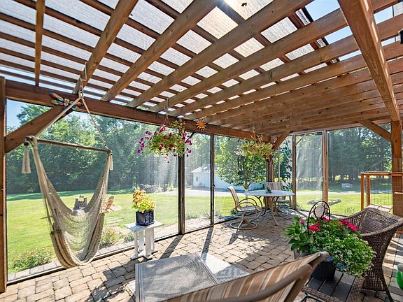 Beautifully Appointed & Meticulously Maintained Offering Incredible Indoor & Outdoor Living Spaces on Just Over 5 Acres of Land*Bonus Detached Garage w/Heat & Electric*Magazine Worthy Kitchen Remodel Offers Quartz Island w/Counter Bar*Formal Dining & Living Rms Feature Hardwood Flooring*Owners Suite Boasts Designer Bath & Tray Ceiling*Family Rm has Cozy Fireplace & W/O to Enclosed Sunroom Overlooking Peaceful Tree-lined Views*Acreage Includes Quiet Stream & Walking Trails*Private, Gated Drive