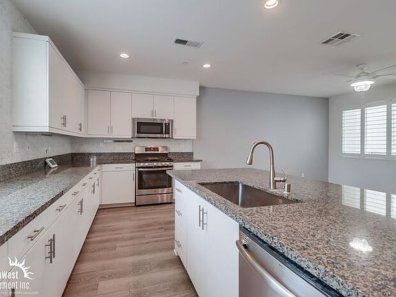 Modern 2Bdm 2.5Ba Townhome with EV Charging & Balcony in Desirable Millenia Community. This stunning townhome features a contemporary open-concept layout, perfect for entertaining. The bright and airy living area seamlessly flows into the dining and kitchen spaces. The kitchen is equipped with ample cabinetry, a convenient island, and stainless steel appliances, including a refrigerator, oven/stove, built-in microwave, dishwasher, and deep basin sink. The spacious primary suite provides a peaceful retreat with a large closet and an en-suite bathroom featuring dual vanity sinks. The second bedroom also includes a spacious closet and easy access to the second full bathroom. Additional features include in-unit washer/dryer, central A/C, and beautiful hardwood-style flooring throughout. Enjoy outdoor living with a private balcony, perfect for relaxing or dining al fresco. This home also includes a 2-car attached garage and access to community amenities such as pools, parks, and walking trails. Located just minutes from shopping, dining, schools, and freeway access, this townhome combines comfort and convenience. Tenant pays all Utilities including Solar. This property allows self guided viewing without an appointment. Contact for details.