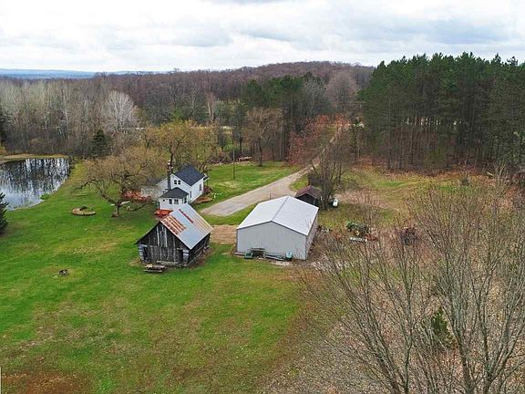 IDYLLIC COUNTRY SETTING complete with your own pond! Charming farmhouse with updated kitchen, new flooring, new paint. Wonderful screened in 3-season porch. Updated home offering 2 bedrooms, 2.5 bathrooms, wood or propane FA heat, 30 x 40 pole building with cement floor, plus 2 other outbuildings including root cellar. Property is a mix of cleared, evergreens and hardwoods. 7 splits already surveyed for new owner potential re-sale. 2 miles of ATV, hiking trails. Several meadows ideal for pasture/crops.