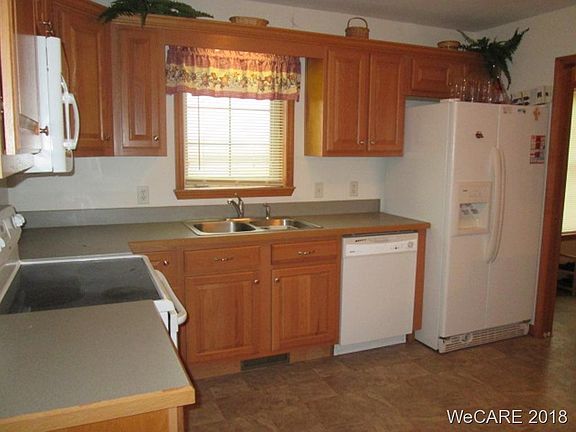 Vinyl ranch house with full basement on 2 acres lot. The living room has propane fireplace. Heating and cooled with geothermal system.