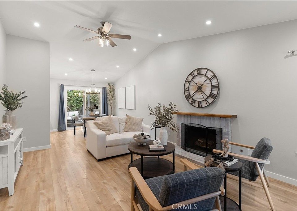 Welcome to 21371 Vintage Way, nestled in the sought-after Wind Rows community of Lake Forest. This beautifully updated and meticulously maintained single-level home offers 4 bedrooms, 2 full bathrooms, a spacious 2-car garage, and a generously sized lot featuring lush grass, a covered patio, and fruit trees. Inside, the fully remodeled kitchen boasts brand-new cabinets, sleek quartz countertops, a stylish farmhouse sink, and all-new appliances. Additional interior upgrades include modern laminate flooring, elegant baseboards, recessed lighting, beautifully renovated bathrooms, fresh paint, newer windows, and a custom-built barn door for the primary bedroom closet. For peace of mind, the home has a newer HVAC system! Ideally situated within the community, this home is just moments from the recently updated Vintage Park—perfect for a scenic walk, playtime with the kids, or a relaxing picnic. To make the process even smoother for buyers, a pre-listing home and termite inspection has already been completed!