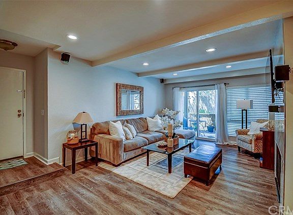 Welcome to the gated community of Sea Spray just 1.25 Miles to the beach . One of the premier locations in tract just steps to community pool and tennis courts. Enjoy the many upgraded features in this fine lower one level end unit. offers remodeled kitchen , new engineered wood flooring , newly painted interior and refaced fireplace in living room . Master suite offers full walk in closet and remodeled custom shower with private side patio. this unit offers 2 private side yards one off master and one off living room . Inside laundry room and single detached garage + one assigned space. offers resort like amenities pool, spa , clubhouse , lighted tennis courts and Volleyball . Walk to nearby beach, Hiking trails, trader Joe's , Banning library , and award winning schools ( Eader, Sowers and Edison ) . HOA includes water, trash, gas, fire and all exterior maintenance . Come and Enjoy the free and easy out door life style you deserve ... this home is truly a Gem!