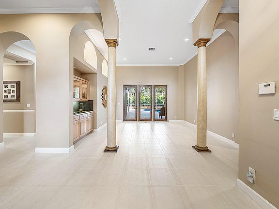 Welcome to The Estates in Boca Falls. This one-story estate sits in the cul-de-sac on a rare 0.36-acre lot, offering 5,013 total square feet, with 3,815 square feet under air. Enjoy a modern chef's kitchen, with a wine refrigerator, three A/C systems, and a resort-style saltwater pool and spa. The expansive patio features a built-in wet bar, perfect for entertaining. Inside, find seven versatile rooms and five bathrooms, enhanced by elegant finishes. Additional features include updated landscaping, security cameras, and an electric vehicle charger. Located in a top-rated school district and near South County Park, this home blends luxury, comfort, and convenience.
