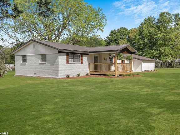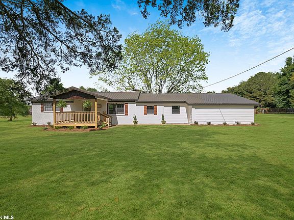 Welcome to Silverhill - just short drive to Fairhope, this updated property is on .94 acres with NO HOA!!!! Enjoy country living in this renovated ranch which has a new AC unit, new metal roof, new windows, new flooring, new countertops, and new front porch! This amazing home has been updated to have an open floor plan with both a living area and a second great room which could be used for dining room, den, or office area. Plenty of counter space with granite countertops, stainless appliances and decorative backsplash. Primary bedroom has a gorgeous walk in shower with a barn door. Large laundry room just off the garage. Plenty of parking for boat, RV or other vehicles. Backyard has a private patio area. Property is partially fenced across the back.