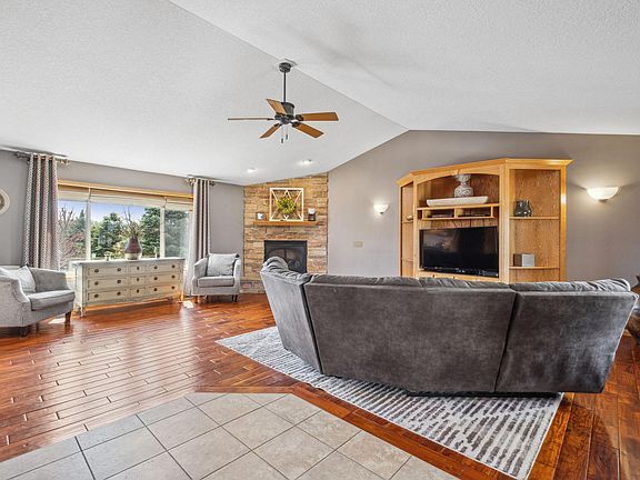Welcome to this beautiful home in Elk River! Walking up you will be welcomed by a charming front porch that overlooks the well-maintained front yard. As you move inside you will be blown away by the hardwood floors, stunning stone gas fireplace, & a vaulted ceiling. The main level holds a spacious living room, ½ bath, laundry room, office, dining room, & the expansive kitchen. The kitchen has crisp white tile backsplash, granite countertops & upscale wood cabinets. The upper level holds the elegant owner's suite that comes equipped with a walk-in closet & a private spa like bathroom. Two other bedrooms & a full bath can also be found on the upper level. Moving down to the lower level you will find the family room that has built-in shelving, a gas fireplace, & walk-out access to the backyard patio. The lower level also holds an elegant ¾ bath, the 4th bedroom, large flex space, & a storage room. This backyard is meant for entertaining & includes a deck, patio & tons of natural privacy.