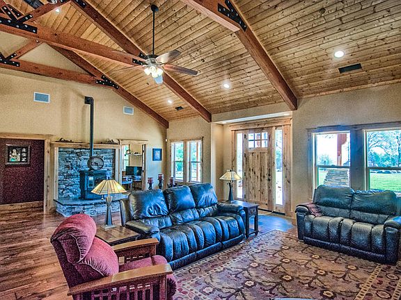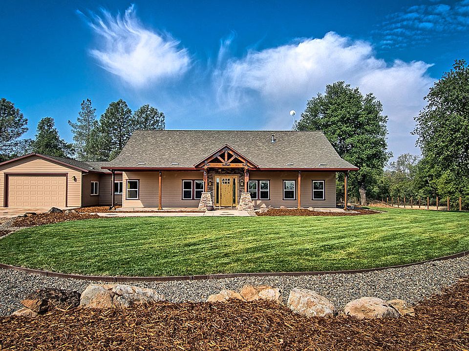 Beautiful Craftsman style home offers 12-acres of fenced and gated privacy. Gourmet kitchen with expansive island & ambient lighting connects to covered patio. Only the highest quality finishes in this impressive estate. Luxurious bathrooms with tumbled travertine and heated floors. Whole house sound system. Two garages and an insulated shop wired with 220. On solar! Must see amenities list CB2611