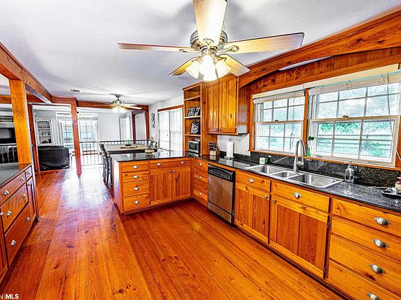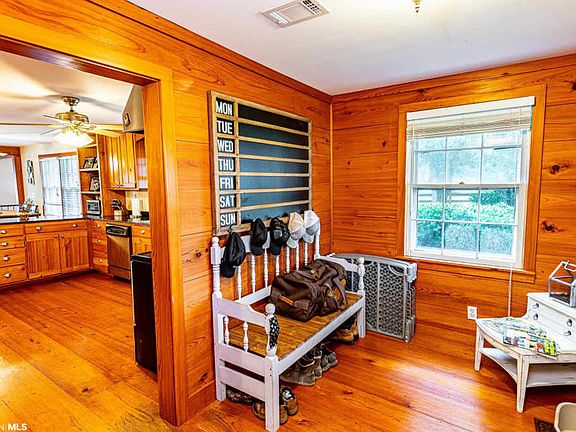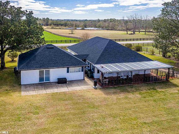 Welcome to your charming home with so much rich history that the sellers would love to share, its located on a level 2.86 acres with Live Oak and Pecan Trees. This spacious 4 bed, 2 bath home has a mudroom, open kitchen and living area and a covered patio with outdoor fireplace looking over this incredible property with a guest house, Chicken Coop, workshop, Barn, Pole Barn with BRAND NEW ROOFS in 2021. Bronze Fortified on the main then shingles on guest house and metal on the other structures. Pole Barn has power outlets. Barn- Rack room on Slab, 888 sq ft, New Breakers Oct 2019, New siding and paint Jan 2020. Chicken Coop and Shed are both 364 sq ft. The guest house renter just moved out but the sellers were getting $900/month, itâs 704 sq ft, 1 bed, 1 bath, kitchen, living room, washer/dryer and a covered porch plus it has a Separate address and entrance. This property is unzoned and Less than a mile from Beach Expressway, 6 minutes from Buckees, 25 minutes to Orange Beach, 10 minutes from OWA, 30 minutes from Mobile. Schedule your showing before its SOLD!