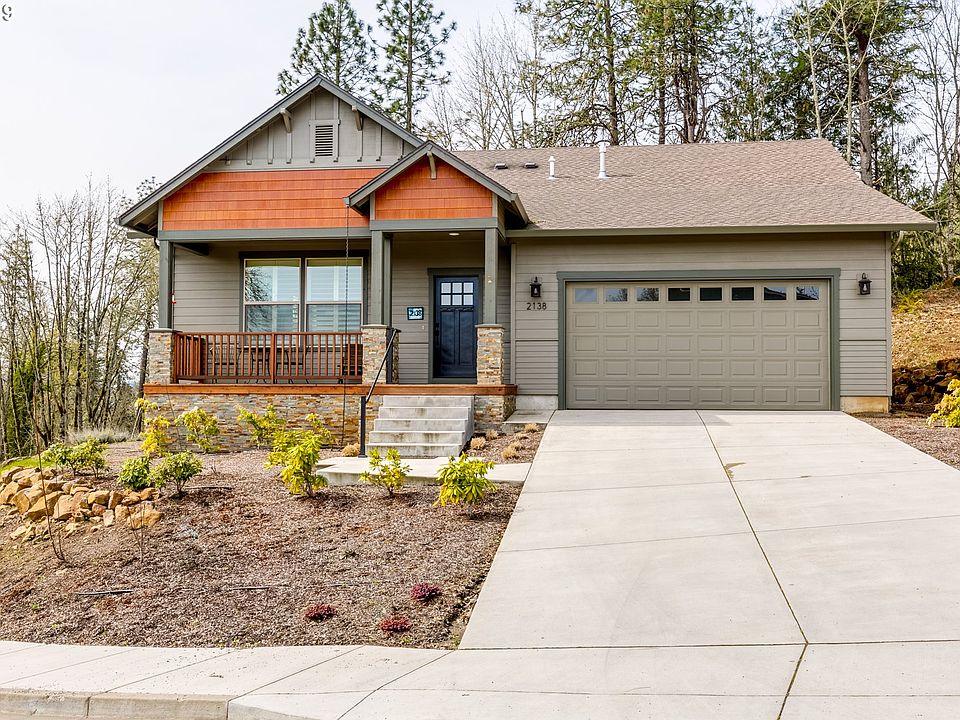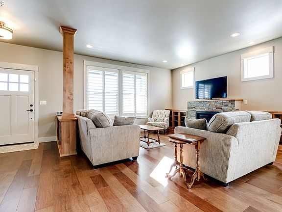 Gorgeous corner lot w/views of McKenzie River. Open concept living w/hickory floors. Living room w/cozy gas fireplace opens to dining room leading to kitchen. Kitchen features gas appliances & granite counters w/ample storage. Master suite has private bath w/dual sinks & heated bathroom floors, WI-closet & 2nd closet. Covered deck w/gas BBQ hookups in backyard offers more beautiful views.
