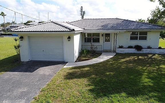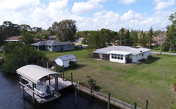 Deep Water Canal, Caloosahatchee River Access Home. Recently remodeled, this is a very clean and move in ready home with 2 bedroom, 2 full baths,large living room, kitchen and dining area and a Florida room that flows together nicely, perfect for entertainment. This home features a completely new kitchen with Samsung stainless steel appliances ( just 2 months old ) , brand new laminate floors throughout except the tiled baths, new light and fan fixtures, interior paint and more. The home features an indoor laundry room with built in cabinets along with a washer and dryer. The Florida room features a pass through from the kitchen and opens out to the large screened in and tiled lanai with eastern exposure that says cool in the afternoon. The backyard is large enough to accommodate a full size pool and sill give you tons of space too play. The boat dock features 35 amp service, running water and a walk around 7000 lb. covered boat lift. Easy to maintain and priced to sell.