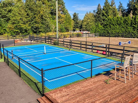 Discover an impeccable 5-acre estate that blends luxurious living with fully equipped professional Equestrian facilities: this home offers approximately 3,500 sq ft of sophisticated design and comfort, complete with a 3-car garage and a boarding barn with five well-appointed horse stalls and two tack rooms; you'll find multiple riding rings and several fenced pastures; there's also a large shop building ideal for equipment or hobby projects. Recreational amenities are superb with a private pickleball court, outdoor kitchen and dining patio, relaxing hot tub, and beautiful open and covered patios. The property is accessed by a private road and surrounded by other acreage properties. The entire estate is immaculately maintained from barn to garden. Available for viewing by appointment only.
