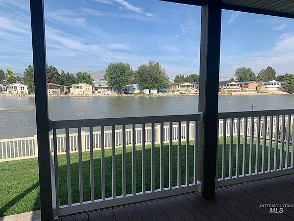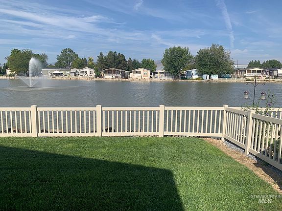 Beautiful lake and foothills view in Blue Valley MHP. Full covered porch facing Lake Patricia, lake facing windows from kitchen, dining room and living room. Comfortable open layout, large master bath, added built-in storage cabinets. Easy living, less traffic in east end of Boise, convenient access to freeway, airport, downtown and shopping.