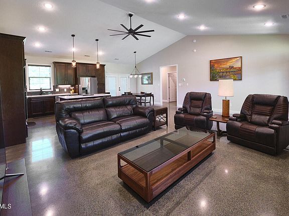 Built in 2022 with 3-bedrooms and 2-bathrooms, this one level rancher has everything you need! The owners didn't skip out on any details with this property. The concrete floors throughout have beautiful details of colored crushed glass imbedded into the concrete. They're easy to clean and low maintenance. All bedrooms are spacious and the entire home is handicap accessible. Not only is it handicap accessible, it's also considered a 'smart' home. The thermostat, lock system, z-wave light switches, and hardwired camera system are just a few items that are 'smart' accessories in the home. The oversized garage is a mechanics dream and has a built-in cabinet system with a sink already in place. The top system of the Husky cabinets in the garage will also convey with the home. Storage is endless with the fully floored attic over the garage and the shed/workshop that has electric and security already installed. Off of the primary bedroom you'll find an attached bathroom suite with a double vanity, floor to ceiling tiled shower, and a soaker tub. The open concept living space within the living room and kitchen make for a great place to entertain. Just off of the kitchen is a covered patio looking out over the majority of the 1.63 acre lot. This home sits conveniently located to Sevierville and also Knoxville. Hot tub and lower Husky cabinets in garage do not convey.