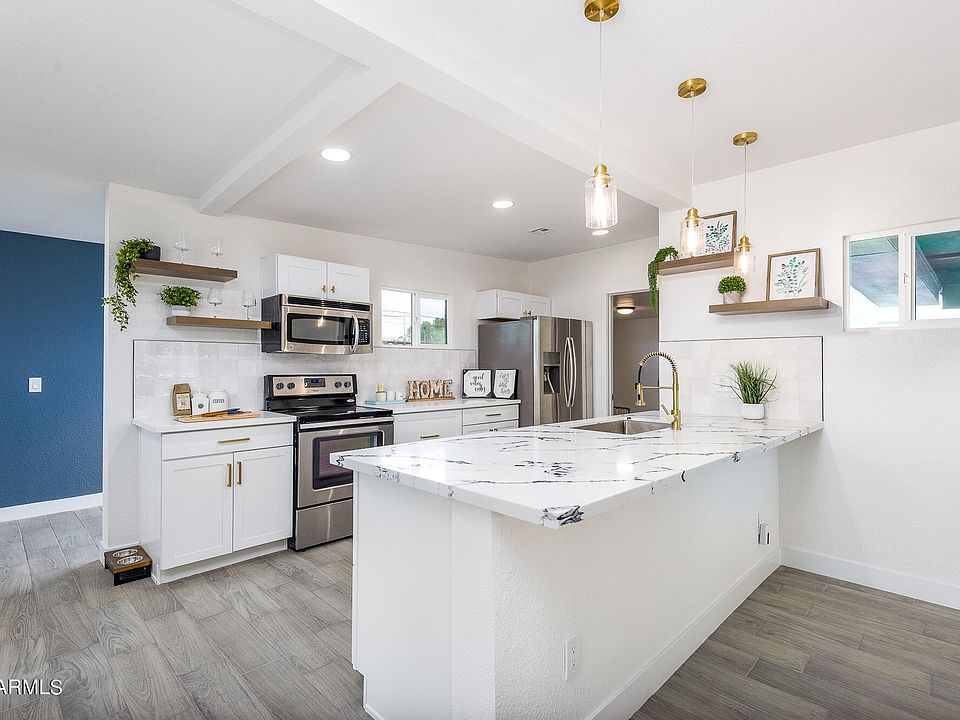 Welcome home to this gorgeous 4 bedroom, 2 bath home. You will love entertaining and cooking in your open concept kitchen with white shaker cabinets w/ matte gold pulls & faucet, quartz countertops, tile backsplash & stainless steel appliances. Wood tile plank flooring throughout main living areas. Carpet in bedrooms. New roof. New plumbing. New AC. New dual pane windows. Both bathrooms beautifully updated with modern tile, vanities & fixtures. New lighting throughout. Freshly painted interior & exterior. New doors, hardware & baseboards. Oversized mud room. Rear patio has artificial grass perfect for relaxing or your puppies. RV gate. Close to downtown & ready for it's new owner!