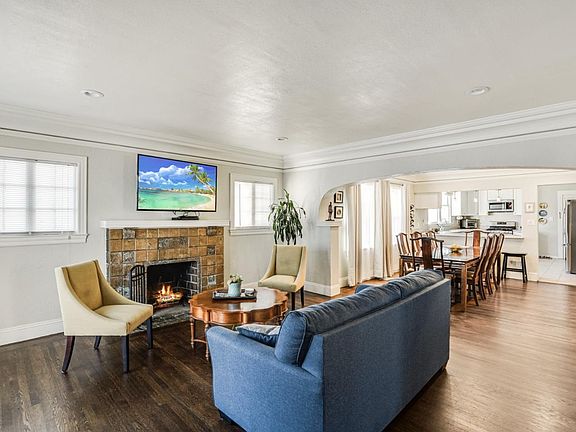 Charmer w/ 3 bedrooms, 1 bathroom, plus attached accessory dwelling unit (ADU) w/ updated living room, kitchenette, bedroom, & additional 1 bathroom! Lots of character including a formal living room w/ bay windows & mantled wood burning fireplace, refinished hardwood floors, formal dining room w/ plenty of seating, bedroom w/ french doors, updated bathrooms w/ designer finishes, & open kitchen w/ updated custom cabinets, granite countertops, & stainless steel appliances w/ 5-burner gas stove. ADU has separate entrance & will be delivered vacant. Detached garage w/ plenty of carport parking. This one is not to miss!