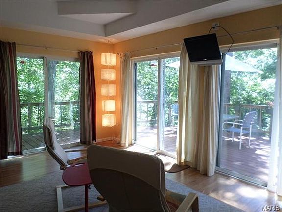 Great weekend place!!!.. home on 6.69 acres just inside city limits in Ironton...total seclusion with nice wooded setting. Stouts Creek flowing through, nicely finished pole barn with 2 bedrooms. beautiful open living area Great room w/ kitchen and din ..liv rm area is spacious with nice wood flooring and lg sliding doors on 2 sides to view treetop-like setting..wrap around deck adds to enjoyment....very cleverly designed for optimum view of nature ..private setting yet 5 minutes to town.. workable as year round living as well..central heat and a/c, energy star appliances inc. washer/dryer, dual low e windows, composite decking on 2 sides, efficient heat pump, heat and a/c., lg master b'rm & bath, 1+ b'rms & 1/2 bath upstairs, no maintenance w/ metal siding and roof, handicap accessible..Trail of Tears on southern perimeter, flowing creek and good hiking trails. very unique home w/attractive interior, property on both sides of creek..surveyed 6.69 acres...a must see!