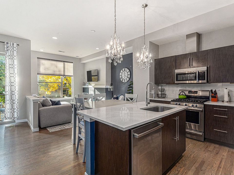 Welcome to your Jefferson Park 3 bed, 2 bath townhome. You'll love the bright, open concept layout, featuring a cozy fireplace and hardwood floors. Your stunning kitchen boasts quartz countertops, and stainless steel appliances. Front door and family room window face the tree-lined street (uncommon with new Denver townhomes). Balconies off the kitchen and third floor allow you to enjoy morning coffee and dinners outdoors. Huge master bedroom features en suite bathroom and walk-in closet. Attached 2 car garage meets all of your storage needs. Centrally located in Denver- walking distance to Empower Field's sports/concerts, parks, restaurants, breweries, run/bike trail, and stores. Quick access to I-25 for commuting and heading to the mountains. Appliances include washer/dryer, dishwasher, refrigerator, gas range, microwave, garbage disposal. The owner will pay for water, sewer, trash, compost. The property has forced air heating and central cooling. Showings will be available Feb 22nd, 2025. The preferred lease date is April 1st 2025. Pets: Yes, $35 monthly pet rent/pet , Pet Fee: One-time refundable $300 per pet. Max of 2. **One months rent security deposit and 1st month's rent due at lease signing.** Owner pays water, trash, sewer. One month's rent security deposit and 1st month's rent due at lease signing.
