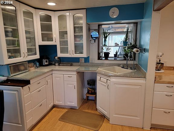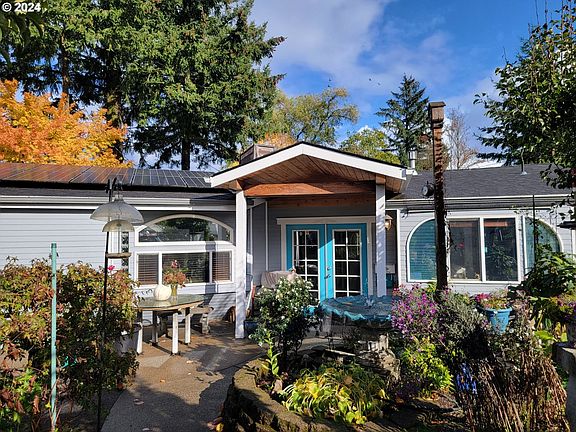 If you have viewed this property before, you need to see it again! Now Turn-Key & Move-In Ready Gardener's Delight! Single level 2-3 BR/2 full Bath home w/ wood laminate floors throughout on an oversized, flat 75x125 ft lot. Circular driveway with parking for RV, boat or lots of friends! Open Concept Living-Kitchen-Dining with exposed wood beamed vaulted ceiling & gas fireplace ambience with artistic mantel. Separated bedrooms have solid Oak double doors, vaults + attached full baths. Newer roof with Solar panels. Bonus room 10x17 for guest/ crafts/morning tea! Forced-air gas heating with central A/C. SS lit Hood over Gas Stovetop/Convection Oven with pot-filler. Deep sink, disposal & water purifier. 14ft of countertop & lots of drawer storage below. Sun porches for plants, storage or workspace. Fenced backyard, tall, raised beds, puppy grass areas, 2 BBQ patios, Game area & 3 Sheds! He-shed, tool shed, One XL 8x10 for your Artist’s Studio! [Home Energy Score = 6. HES Report at https://rpt.greenbuildingregistry.com/hes/OR10219819]
