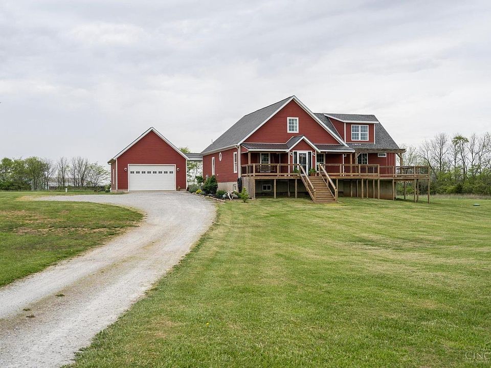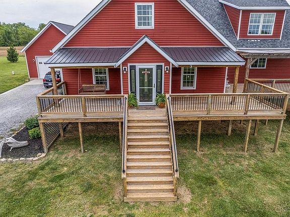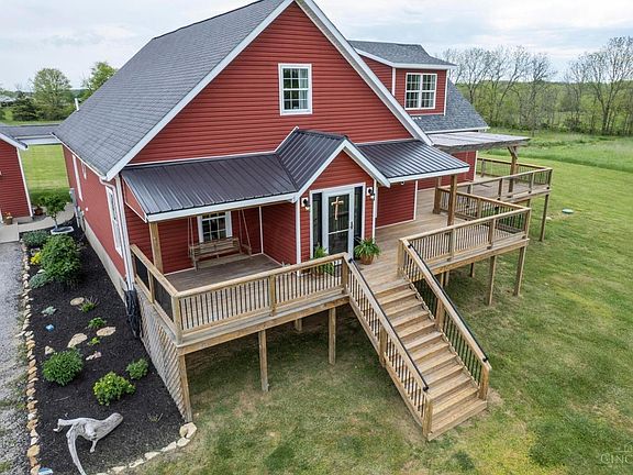 This stunning 5 bedroom, 3 full bath home will take your breath away with all of the features! It has been remodeled with an upscale eye for detail. The kitchen features a huge island with plenty of space for gatherings topped with gorgeous quartz, a chefs dream with double ovens, and amazing natural light. Natural hickory floors span the main level. A primary suite, additional full bath, and utility room are all on the first floor. Upstairs you will find four more bedrooms and a spa like full bath. The basement adds even more living space and so much storage with a walk in crawl space. Outside you have over 9 acres to explore and enjoy from your covered back deck or your nearly full wrap around front porch. This property is truly stunning and unique. Full list of updates available.