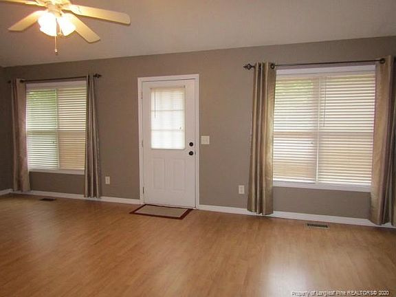 -Charming home in Carolina Trace. This home has three bedrooms, two bathrooms, open floor plan, beautiful laminate floors andsingle car garage. Kitchen has white refrigerator, stove and microwave, and lots of cabinet space. Spacious bedrooms with walk-in closetsand large back deck. This home is in a great gated community that is convenient to Fort Bragg, Sanford and Raleigh.