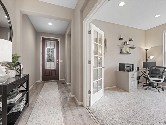 Welcome home to this beautifully maintained, ranch style, home located at the end of a cul-de-sac with mountain views! As you enter this open floor plan, with 9 foot ceilings, you will find an abundant amount of sunlight filling each room showcasing the gorgeous Luxury Vinyl Plank flooring throughout the entry, great room and kitchen. The spacious kitchen, offers an abundance of cabinetry with soft-close drawers, quartz counter-tops, a walk-in pantry, stainless steel appliances, a farmhouse apron sink, a spacious island with pendant lighting and a large dining area. Entertaining is made easy from Kitchen to Great Room providing access to the deck and private backyard with 6 foot privacy fencing. Around the corner you will find a large Primary Suite, an en-suite Five Piece Bath with quartz counters, a seamless shower door, a large soaking tub (with mountain views) and a walk-in closet. The second guest bedroom offers privacy and distance from the Primary bedroom and has gorgeous mountain views and a full en-suite bath. French doors lead to an office which could be used as a 5th bedroom or formal dining room. A large laundry room and half bath complete the main level. The professionally finished basement has two additional bedrooms with large walk-in closets, a full bathroom, a large recreational room (or second family room) and plenty of storage space. The three car garage has an electric charging station, built-in overheard storage shelves and a service door to the backyard. Save money on your homeowners insurance with a newer impact resistant roof! Prime location with easy access to Southlands, in walking distance to the elementary school and close proximity to the new Central Recreational center and several parks including The Great Plains Park, The Plains Conservation Center, and Side Creek Park. Approximately 15 minutes away from Cherry Creek State Park and The Aurora Reservoir. Ranch Style living at its Finest!