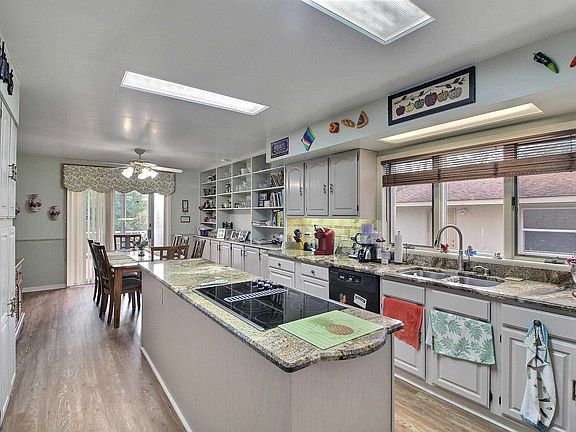 Location , Location Location is what this 1.5 story brick has to offer. Located on 2 corner lots in Spanish Cove bay side. Ride your golf cart to the pool, pier or club house. The center of the home is the living room with large brick fireplace and parquet floors. There is also a music room adjoing the living area. The main bedroom is large with lots of anderson windows. The primary bathroom has an extra vanity for easy getting dressed. There are also another vanity with 2 sinks and a large walk in shower that is only a few years old. There are numerous skylight throught out the home for plenty of lighting. The kichen has been updated with grantic countertops and a 10 ft Island with a Kitchen Aid cook top. There are also double ovens and the refrigerator stays as well. The upstairs consit of two bedrooms, an office and a floored attic that could be easily finished out for addtional square footage. The washer and dryer convey and the laundry room also has a utility sink. There is a workshop is 19x 14 and has window air conditioner. The double garage has lots of shelving for storage. The backyard is fenced and also has a deck off the dining room. The metal roof is only 11 years old. The water heater is 3 years old and the HVAC is 10 years old. There is a well and a sprinkler system to water your lawn. The Spanish Cove community is golf cart friendly and has so much to offer. There are tennis courts, an outdoor pool that is covered and heated in the winter,a clubhouse, 24 hour security, an amazing pier, barbeque area, private beach, playground, basketball courts, fitness center, etc. It's only minutes to the sandy white beaches on the Gulf of Mexico.