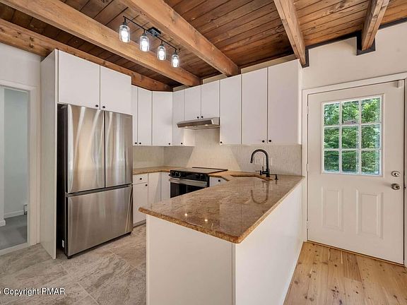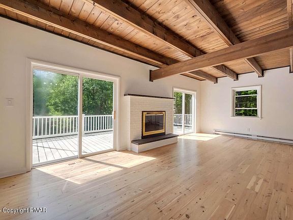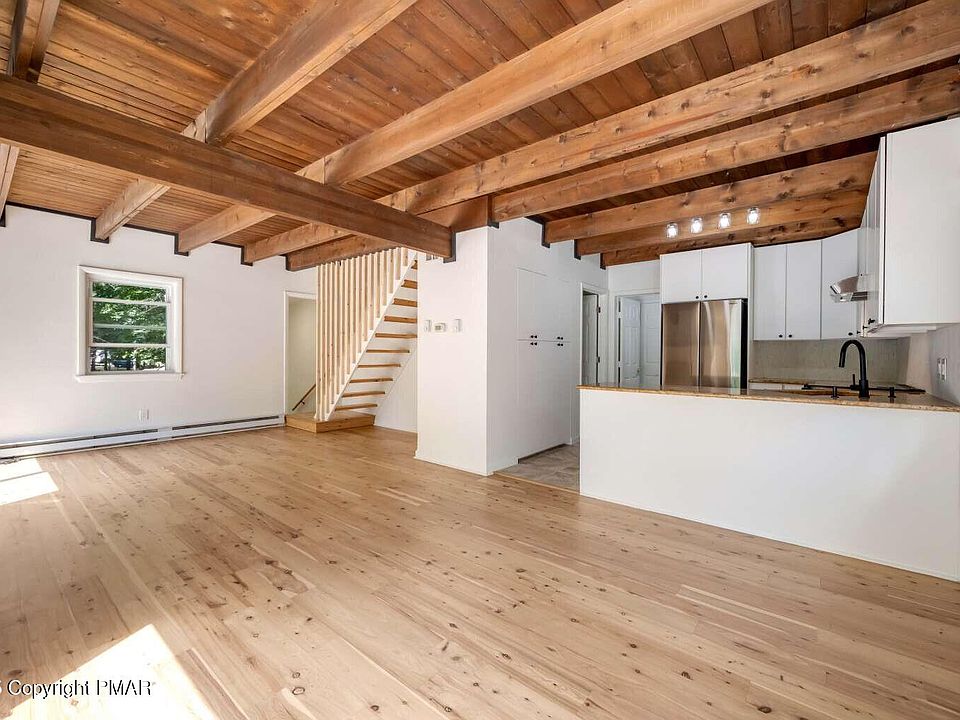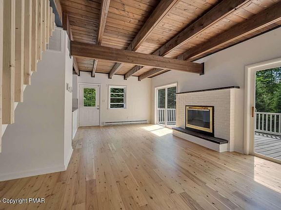 Perfect for AirBNB or in-laws living together. Your getaway Chalet awaits you in the beautiful mountains of East Stroudburg. Home is newly renovated with modern rustic design & abundant natural light. NEW Hardwood throughout! Main house has 4 bedrooms & 2 full baths. Spacious balcony deck. 1 acre yard. ALL NEW appliances, plenty of storage space. Fireplace. 2 story Garage was converted into living/recreational space which has septic/water ready to add bathroom and kitchen on 1st level. 2nd level fully renovated. Winona Lakes community is private & friendly, offering an array of amenities & activities such as an indoor & outdoor pool, clubhouse, basketball court, playgrounds, 6 lakes/ponds for fishing, swimming & boating.