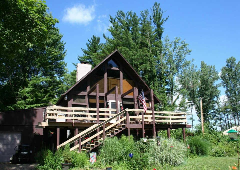The A-frame house is for rent. 3 bedrooms and 3 baths. Cathedral ceilings. Open dining room and family room.
