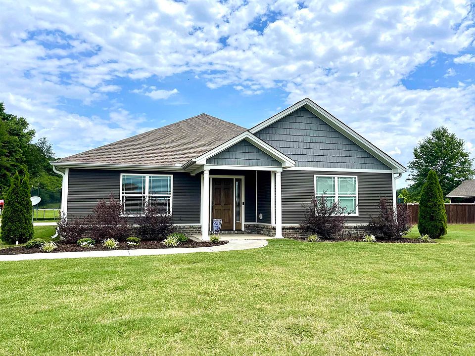 Discover your dream home in Bald Knob! This stunning, custom-built 1,850 sq ft home, nestled on a serene 1.4-acre lot, is the epitome of comfortable living. As you step through the front door, you'll be greeted by a spacious living room that seamlessly flows into the kitchen and dining area. The kitchen is a chef's dream, featuring granite countertops, custom lighting, and a garbage disposal. A breakfast bar offers additional seating, while a double-sided pantry provides ample storage. The master suite is a private retreat, complete with a large walk-in closet and a luxurious master bathroom boasting a custom-tiled walk-in shower. A spacious laundry room with a sink adds to the home's convenience. Outside, a 2-car garage with a pull-down attic door offers plenty of storage space. The expansive backyard is perfect for outdoor entertaining or building a workshop. Custom LED lighting illuminates the home's exterior, creating a warm and inviting ambiance. Located in a peaceful, sought-after neighborhood, this home is just a short golf cart ride away from the Bald Knob golf course. Don't miss this incredible opportunity! Schedule your private showing today. Agents, see remarks.