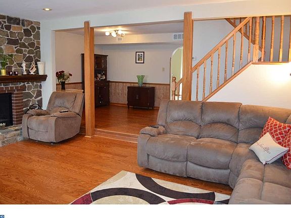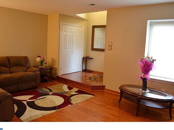 Rarely offered move in condition 2 bdr, 2.5 bath with loft- one of the largest models in the Village Shires development. Two story foyer,sunken living room with completely restored wood burning fireplace. The kitchen is open to the family room, with sliding door to the fabulous back yard patio with a lovely view. First fl. modern powder room, upstairs is a large loft( possible bedroom or office),hall bath with soaking tub,laundry room. Large master bedroom with big closets and updated master bath.There is another nice size bedroom as well. Wood floors throughout the house,freshly painted,new c/a and heater 2014, new faucets, main plumbing line,front door, newer windows and floors on first floor .This community offers the use of 3 pools,tennis courts and playgrounds, one of the best school district.One car detached garage and two car parking. Lower monthly fee.