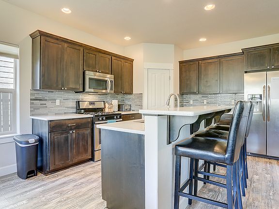 Lovely home in Bend's Mirada Neighborhood, this open floor plan beauty comes with a gorgeous kitchen that includes solid surface countertops, and large eating bar, stainless steel appliances, and a large pantry. Upstairs you will find all 4 bedrooms including an oversized primary bedroom and primary bath with a soaking tub and new tile shower. The backyard is fenced and has a covered patio for enjoying the high desert weather. HOA includes the use of the neighborhood pool and park and all front yard landscaping.