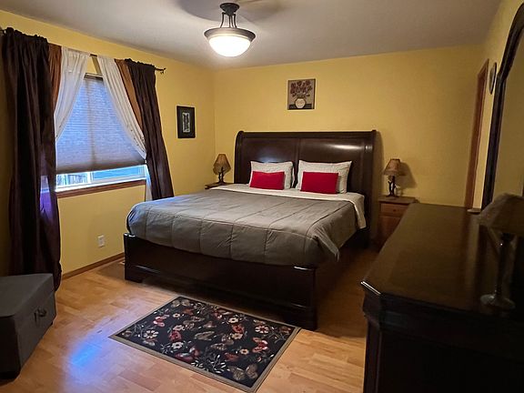 Wonderful furnished 3 bedroom, 2 bath house. Very quiet location close to everything. House has open floor plan with lots of light and windows. Wood burning stove makes it cozy and warm in the winter. Newly remodeled 2 full bathrooms. Updated new kitchen appliances, nice gas range and oven, new furnace and new water heater. Central air and AC. Double car garage. Custom cabnitery throughout garage and work bench included. Beautiful shaded fenced back yard with lovely trees and a nice deck creates privacy and tranquil environment. Bonus kids finished playhouse in backyard, fully enclosed shed included, and 3 raised garden beds. Quiet street and great neighborhood. House can be rented furnished or unfurnished. Tenant responsible for all utilities, including yard work and maintenance. Lease terms flexible, 6-9 months or longer possible depending on situation. Available October 1st, 2024.