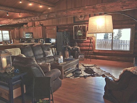Custom log home in central Bend location w/scenic setting. A short distance to hospital, shopping & schools, set on a quiet cul-de-sac. Gas fireplace w/built in entertainment center in a open great room w/vaulted log beam ceilings, great to entertain. 3 bed, 3 bath in main house and bonus space above garage. Master on lower level w/private jetted soaker tub & separate shower. Priced less than $165/sq ft! A must see to appreciate this home & convenient location! Live the mountain lifestyle in town!