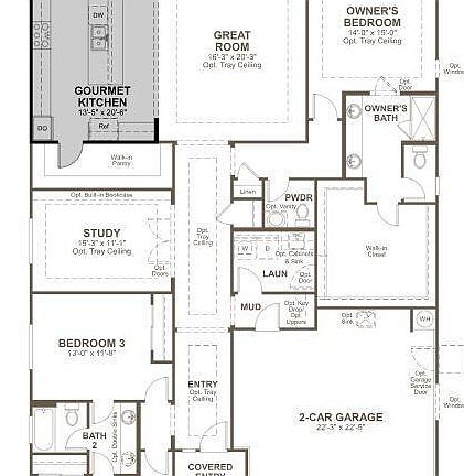 The ranch-style Cassandra plan showcases an open layout with a great room, a breakfast nook and a large gourmet kitchen. The owner's suite is adjacent, and boasts a generous walk-in closet and an attached bath with a large walk-in shower. Two additional bedrooms flank a full bath, and the nearby private study and powder room finish off the interior.