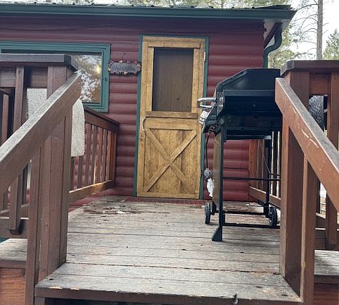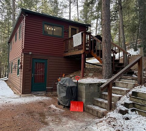 Old world charm abounds in this upper level 1 bedroom apartment in cabin duplex, located in beautiful Indian Hills just 30 minutes to downtown Denver and only 10 minutes to Aspen Park and Evergreen. Private wooded location, close to open space, wildlife and hiking. Gas, electric, water and trash pick up included. Internet, cable and phone at renter's expense. Newly painted, new carpet, remodeled bath, new electric stove and kitchen storage cabinet. Shared storage shed available. 2 Decks! BBQ and dining table and chairs included on private rear deck. Absolutely NO SMOKING. Available now. First and last months rent plus $1650.00 security due at signing of lease. Refundable pet deposit of $300/pet if applicable. Lease term negotiable. Utilities included, gas, electric, water, trash and recycling service. First, last month's rent plus security deposits due at signing. Absolutely NO SMOKING. Lease duration varies depending on month lease is signed. Tenant is expected to remove snow from stairs and common area. Small storage shed available, shared by downstairs tenant.